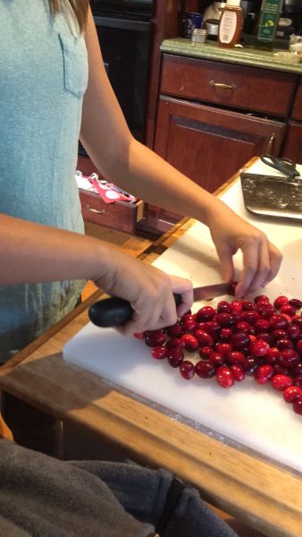 - Cut the cranberries in half (optional).